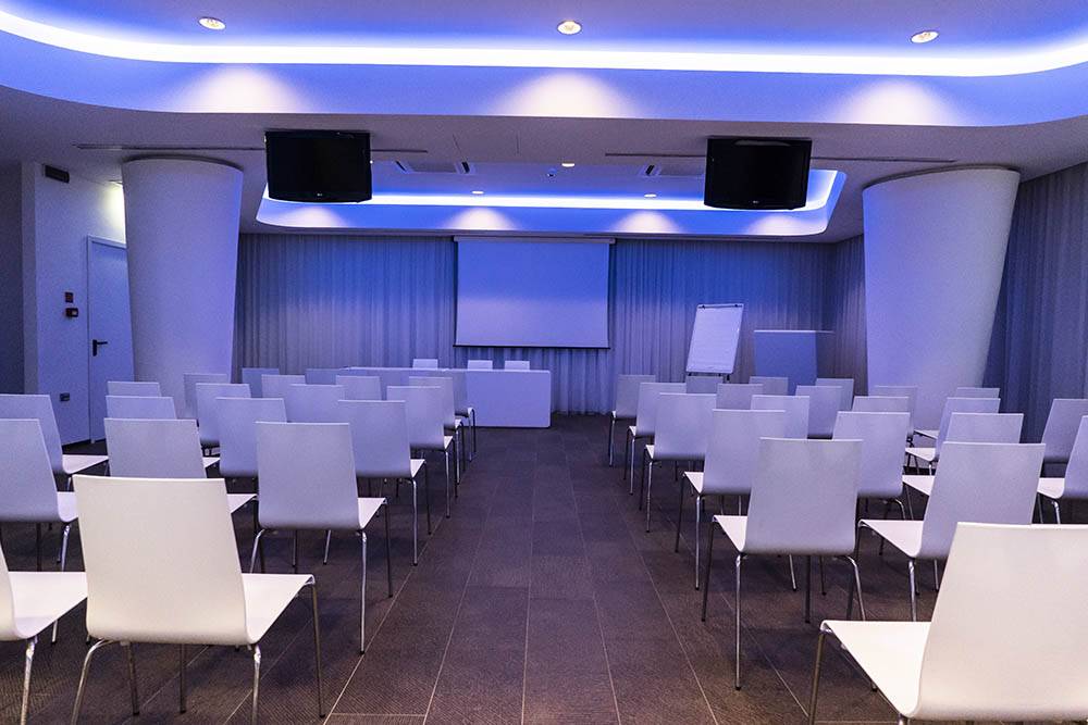The Up-Wind room is the perfect space for corporate meetings, conferences, and impactful presentations. With a capacity of up to 140 people in theater setup and equipped with a projection screen and image repetition systems, it ensures functionality and comfort for every occasion.